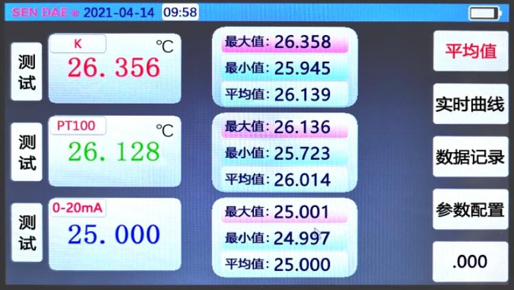 数值界面显示即时数值和平均值计算,同时显示更多通道数值可以定制界面